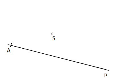 Úsečka AB je strana obdélníku ABCD a leží na přímce p. Bod S je středem kružnice opsané obdélníku ABCD.