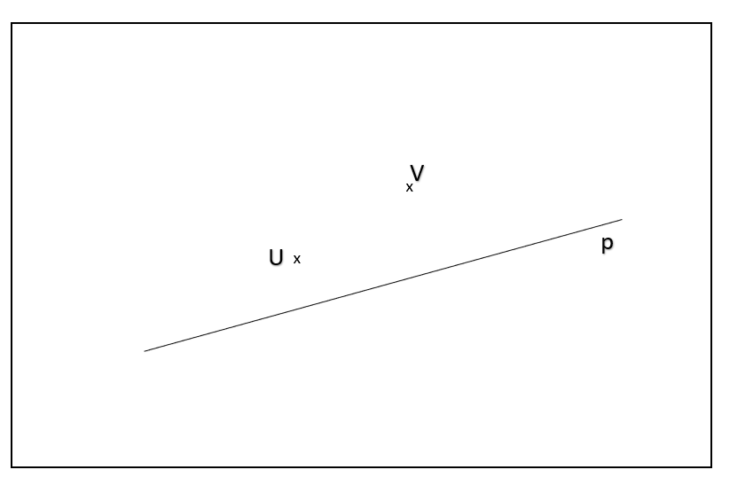 V rovině leží přímka p a body U a V, které na této přímce neleží.