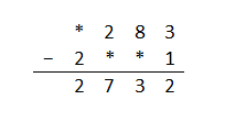 Najděte a napište jednu číslici, kterou lze nahradit hvězdičky tak, aby byl výpočet správný.