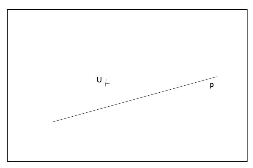 Bod U je střed strany AD obdélníku ABCD, strana AB leží na přímce p a je dvakrát delší než strana AD. Bod V leží na straně AB.