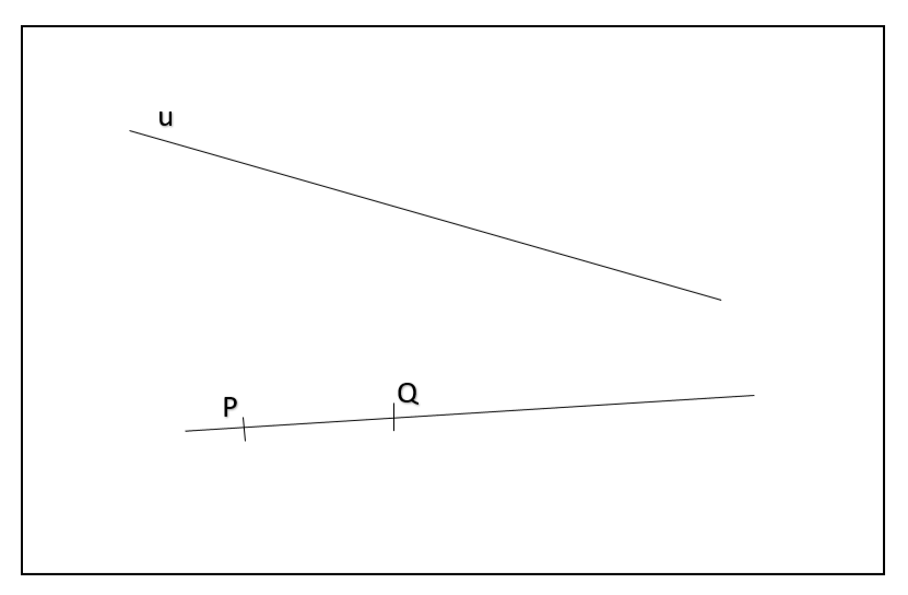 Úsečka PQ tvoří jednu stranu rovnostranného trojúhelníku PQR. Vrchol R trojúhelníku PQR je současně vrcholem trojúhelníku RST. Strany RS a RT trojúhelníku RST mají stejnou délku jako úsečka PQ. Strana ST leží na přímce u.