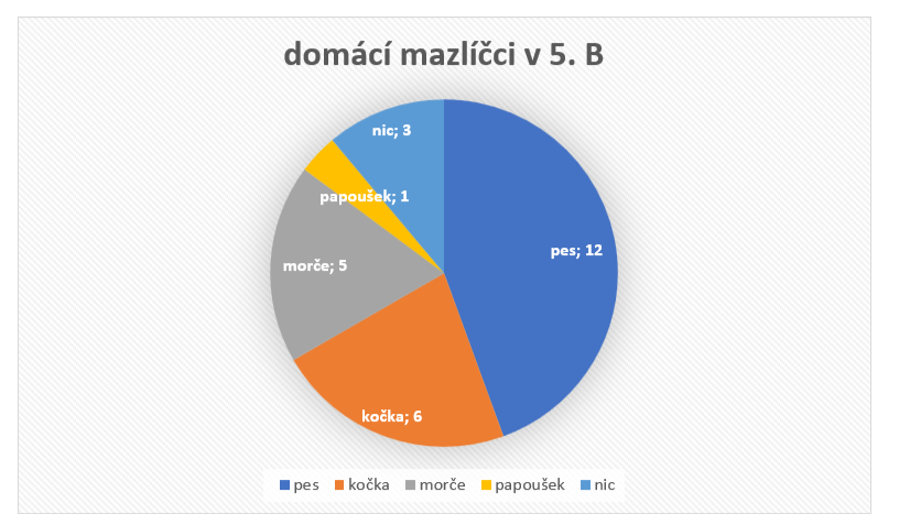 V grafu jsou znázorněny počty a druhy domácích mazlíčků, které mají děti v 5. B.