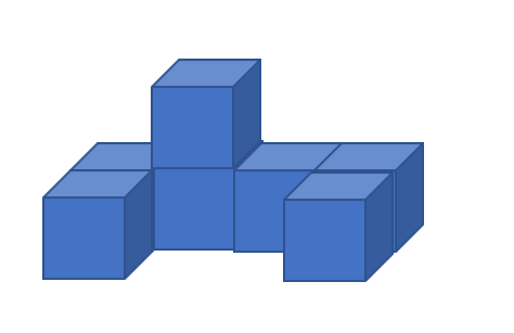 Těleso, které vidíte na obrázku, se skládá ze 7 stejných krychlí. Hrana krychle má 7 cm.