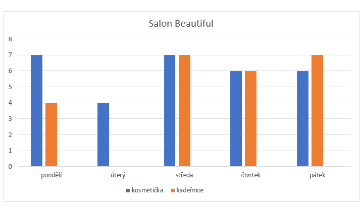 Kosmetička a kadeřnice si pronajaly společně Salon Beautiful a dohodly se, že veškeré náklady na provoz si rozdělí podle času, který provozovnu využívají. V grafu je zobrazen počet hodin, které za týden odpracují.