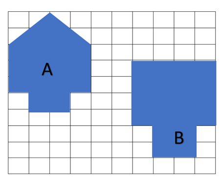 Ve čtvercové síti jsou zobrazeny dva útvary. Jejich vrcholy leží v mřížových bodech. Síť je tvořena čtverečky o straně 2 cm.