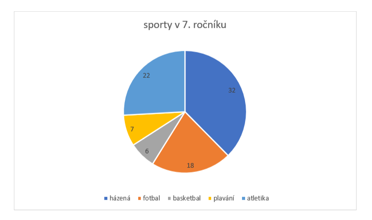 V 7. ročníku se někteří žáci věnují sportu. Dokonce 9 žáků se věnuje 2 sportům a 3 žáci se věnují třem sportům. V grafu je uvedeno kolik žáků se věnuje kterému sportu.