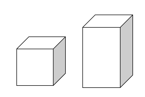 Hranol se čtvercovou podstavou o výšce 12 cm je o 4 cm vyšší než vedle stojící krychle.